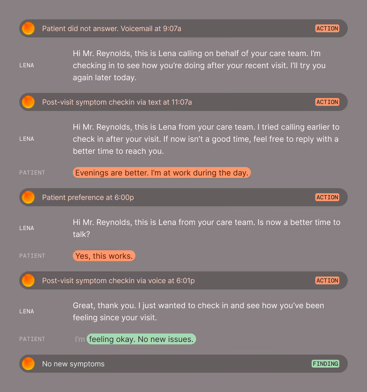 We help health systems follow patients via voice and SMS, escalating to clinicians only when needed.